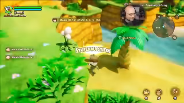 05:02:29Geführt von dem Hinweis der Göttin, findet die Gruppe tatsächlich eine Sonderpalme. Hier wird die Technik des Findens von Schwachstellen an Bäumen mit der Taste X demonstriert. Nachdem die Sonderpalme erfolgreich gefällt wurde, werden die stabilen Palmenstämme zum Opa Jei in Tixingen gebracht. Für diese seltene Leistung erhält die Gruppe eine große Belohnung von 500 Gulden und der Holzfäller-Rang des Streamers steigt erneut, was weitere Fähigkeiten freischaltet.