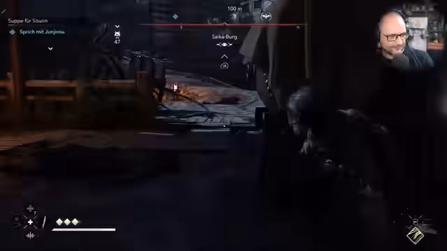 00:29:21Nachdem er sich im Zielbrett orientiert hat, stürmt der Streamer eine Burg, um Samurai zu eliminieren. Er stellt fest, dass die Kampfmechaniken nach dem Patch anspruchsvoller geworden sind; er verfehlt häufiger und Gegner unterbrechen seine Angriffe. Er nutzt seine Shinobi-Fähigkeiten, Jaske, um unauffälliger vorzugehen, und sammelt Schätze. Nach dem erfolgreichen Abschluss der Mission, bei der alle Samurai besiegt wurden, nutzt er Animus-Punkte, um den Gebietsalarm aufzuheben.