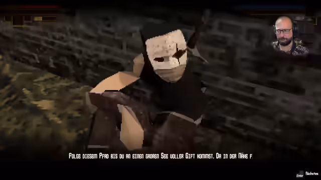 03:02:26Nach einer Pause ist der Streamer zurück und beginnt mit dem Spiel Verho Curse of Faces, einem geistigen Nachfolger der Kingsfield-Reihe von From Software. Er stellt die grundlegende Prämisse des Spiels vor, in dem Menschen nach einer Katastrophe maskiert leben müssen. Nach Charakterauswahl beginnt er mit dem Tutorial und erkundet die grundlegenden Mechaniken des Spiels, bewegt sich und kämpft gegen erste Gegner.
