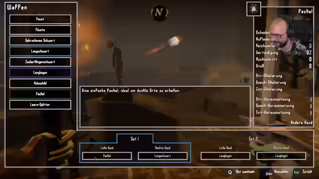 03:39:26Zu Beginn des Streamings wird über die Spielmechanik gesprochen. Der Streamer findet ein gebrochenes Schwert, das jedoch noch verwendbar ist. Es wird erklärt, dass die Waffe eine Stärkeskalierung hat. Der Spieler entscheidet sich, seine Attribute Stärke und Geschicklichkeit zu erhöhen, was den Schaden der Waffe verbessert. Die Gegner respawnen nach einer Weile, und der Spieler nutzt dies zum Farmen von Erfahrungspunkten, um sich aufzuleveln und bessere Ausrüstung zu erhalten.