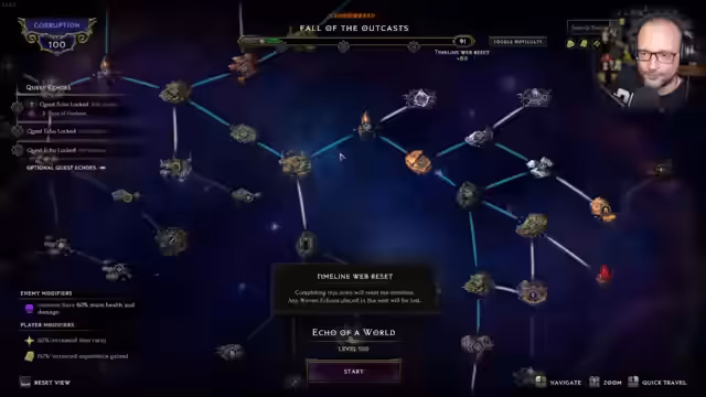 04:53:07Der Schatten von Oribus wird besiegt, was zu einer Corruption von 130 führt. Gegner haben nun 93% mehr Leben und Schaden, aber die Rarity der Gegenstände ist auch besser. Nach dem Kampf beginnt man wieder von vorne und kann die Timeline mit einem Echo zurücksetzen, um die Corruption zu entfernen. Es werden Affinitäten bei den Tabs hinzugefügt, um Gegenstände automatisch in die richtigen Tabs zu sortieren. Das Spiel bietet ein Crafting-System, bei dem man selbst bestimmen kann, was der Gegenstand werden soll, und es gibt genügend Materialien zum Craften. Lootfilter werden verwendet, um nur brauchbare Gegenstände anzuzeigen, und müssen bei Bedarf angepasst werden. Das Spiel wird als Action-Rollenspiel im Hack-and-Slay-Universum beschrieben und bietet ein lohnendes Loot-System. Das maximale Level beträgt 100, und es gibt ein Prestigeding namens Deathless, das anzeigt, ob man bisher noch nicht gestorben ist.