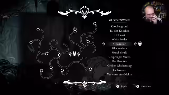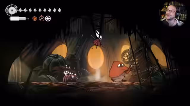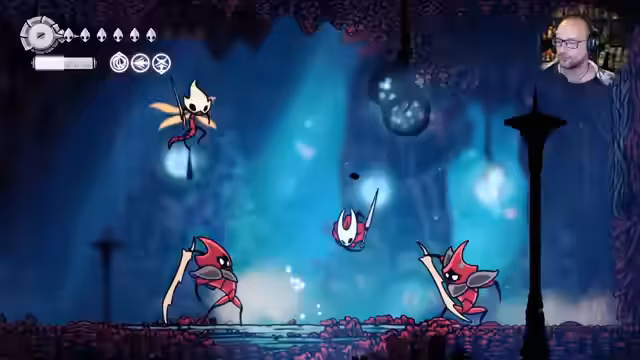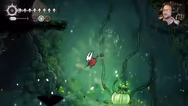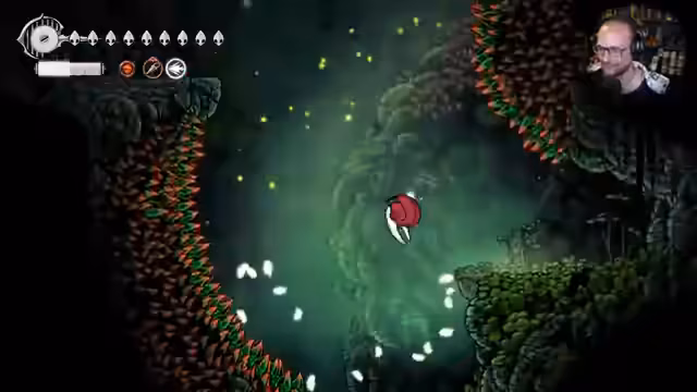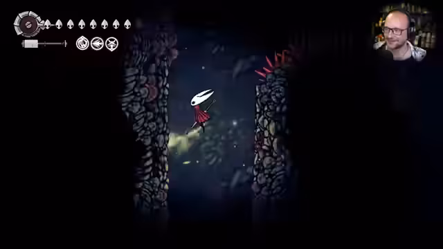 05:36:42Die wiederkehrenden Kämpfe gegen fliegende Gegner steigern die Frustration des Streamers ins Unermessliche. Er hasst deren Geschwindigkeit und Bewegungen und wechselt daher seine Waffe, um einen besseren Hitzbereich und die Fähigkeit "Pogo" zu nutzen. Er muss ständig abwägen, seine Seide zu sparen oder für Schadensfähigkeiten zu opfern, was den Spielablauf für ihn zusätzlich erschwert.