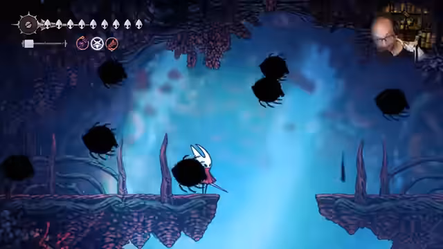 04:02:02Nach dem mühsamen Aufstieg zur Nadlerin beginnt ein äußerst anspruchsvoller Bosskampf. Nadliner ist schnell und kombiniert schwebende Angriffe mit bodenständigen Schlägen. Der Streamer hat Schwierigkeiten, die Attacken zu timen und nimmt mehrmals Schaden, was ihn zu einer kurzen Pause zwingt. Er kritisiert die Steuerung von Schweben und Doppelsprung und vergleicht die feindlichen Kämpfe in Silksong mit denen in Hollow Knight, wobei er besonders die fliegenden Gegner als Frustrationsquelle benennt.