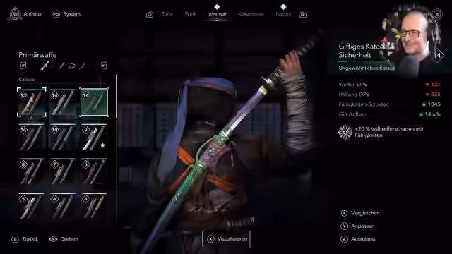 03:07:08Der Streamer erklärt, wie man die Twitch-Drops im Spiel erhält, und erwähnt Ubisoft-Konto-Verbindung. Er zeigt seine neue Ausrüstung und spricht über die verschiedenen Drops wie Sturmband, Rüstung und Kurzmesser. Er spricht über seine Spielzeit und das Niveau. Der Streamer diskutiert über Schwierigkeitsgrad und Instant-Kill-Mechaniken, wobei er etwas frustriert ist, dass manche Bosse sehr schnell besiegt werden können. Er zeigt auch den Fotomodus und seine Filtermöglichkeiten.