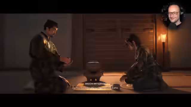 00:44:02Der Streamer muss rote Seide beschaffen, um für die Teezeremonie angemessene Kleidung zu erhalten. Er spricht mit einem Gerber, der ihm Informationen über die Beschaffung von Seide gibt. Diese Seide soll von Piraten gestohlen worden sein. Der Streamer begibt sich auf ein Piratenschiff, das die Portugiesen angegriffen haben, und bekämpft die Piraten. Nachdem er die Seide erbeutet hat, kehrt er zurück und stellt fest, dass der Handel mit den Portugiesen in Sakai umstritten ist, da sie in Konkurrenz zu einheimischen Händlern stehen. Er beschließt, die traditionelle rote Seide statt der exotischen schwarzen zu wählen.