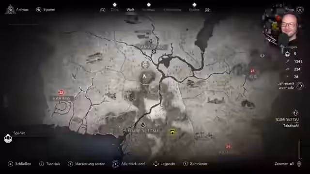 00:35:41Der Streamer verfolgt seine Hauptquest, die darin besteht, die Büchsenmacherin zu finden, die die goldverzierte Flinte hergestellt hat, mitverantwortlich für den Tod seines Vaters. Er gibt sich als Händlerin aus und versucht, Informationen über die Büchsenmacherin zu erhalten. Dabei muss er vorsichtig sein, um nicht als gesuchter Verbrecher aufzufallen. Er beobachtet einen Kampf und stellt fest, dass die Situation in Sakai sehr angespannt ist. Schließlich trifft er auf Teppo-Händler und Färber, die ihm bei der Suche nach der benötigten Seide helfen.
