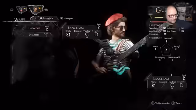 01:02:04Bevor das Spiel gestartet wird, geht der Streamer auf die technischen Einstellungen von Expedition 33 ein. Es wird auf Deutsch untertitelt und die Sprache ist auf Englisch gestellt. Die Grafikoptionen wie V-Sync und Bewegungsunschärfe werden optimiert, für einen stabilen Stream auf 60 FPS eingestellt und unerwünschte Effekte wie chromatische Aberrationen deaktiviert. Der Schwierigkeitsgrad wird zunächst auf 'Entdecker' festgelegt, der narrative Fokus legt. Der Einstieg in die Geschichte wird als atmosphärisch und geheimnisvoll beschrieben, was sofortige positive Resonanz im Chat hervorruft. Der Charakter 'Gustav' und seine Beziehung zur 'Sophie' werden als zentral für die Erzählung eingeführt.