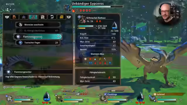 01:50:33Zurück im Spiel führte der Streamer aus, dass er bereits erheblich mehr Zeit in Monster Hunter Stories 2 investiert habe, als er ursprünglich geplant hatte. Er erzählte, dass er gezielt nach bestimmten Monstern und Materialien gefarmt habe, um eine spezifische Rüstung zu craften. Der Prozess des Anpassens der Rüstungsfarben wurde detailliert gezeigt und diskutiert, wobei er feststellte, dass nur die Hauptfarbe sichtbar sei und Nebenfarben keinen Einfluss hätten. Der Stream bewegt sich nun in einem Gebiet mit neuen Monstern, und es wurden Taktiken für den Kampf besprochen, wie der Einsatz von Brechschaden und Team-Koordinationsmanövern.