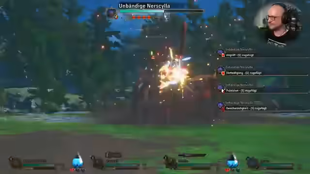 05:03:05Der Streamer nimmt den Kampf gegen die Nerf erneut auf, diesmal mit einer angepassten Taktik. Er beginnt direkt mit dem Königsludros und setzt auf Buffs wie Hitzeflimmern und Ausweichen, um dem tödlichen Schlaf-Gas und dem Laserangriff des Monsters zu entgehen. Der Kampf verläuft ebenfalls sehr hart, da das Monster nach dem Einschlafen der Gruppe einen extrem starken Folgeschlag ausführt, der sie auf ein einziges Leben reduziert. Die Spannung bleibt bis zum Ende hoch, da der Kampf nur mit einem perfekten Timing und viel Glück gewonnen werden kann.