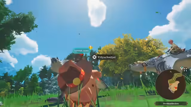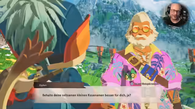 07:02:36Der Streamer beginnt mit der Erkundung und stellt fest, dass es eine Chance gibt, einen Regenbogen Katachi zu finden. Er ist von der süßen Aufmachung des Spiels angetan und erwähnt die Pugis, insbesondere ein "Prinzessin-Zauberschleifenschwein". Nach einer kurzen Pause für ein Pugi-Rennen, ein Minispiel, bei dem man auf einem Monsti reist, findet der Streamer die Belohnung "Pugi-Jäger" und beschreibt die darin enthaltene Funktion, die einen vibrieren lässt, wenn sich ein Pugi in der Nähe befindet.