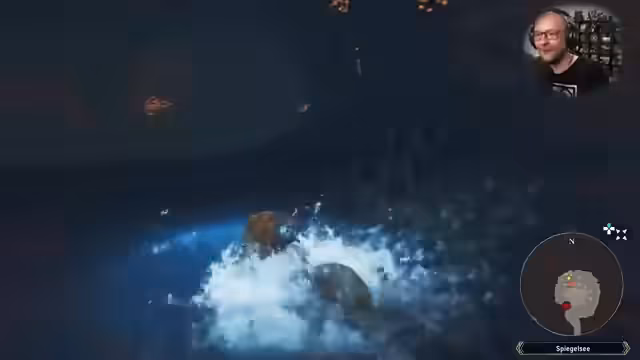 04:24:30Nachdem er eine normale Quest in der Nähe seines Ufers angenommen hat, begibt sich der Streamer mit seinem Schwimmimonster, dem Feuerludroth, in ein neues Gebiet. Er gelangt in eine goldene Höhle und stellt fest, dass er darin einen Kristall-Paulummo fangen kann, das starkes Blitz-Technik-Schaden verursacht. Während des Kampfes setzt er verschiedene Buffs wie Konfrontation und Abwehrlied ein, um das Monster zu schwächen, indem er zuerst dessen Kristall zerstört, um den Rückstoßeffekt zu neutralisieren und anschließend seine restlichen Lebenspunkte mit einem gezielten Angriff reduziert.