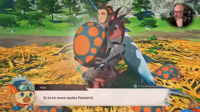 00:18:58Nach dem Begrüßung des Publikums und diversen kleineren Gesprächen und Anekdoten, wird das Hauptthema des Streams bekanntgegeben. Der Streamer kündigt spontan und sehr überraschend an, heute weiterspielen zu wollen. Das Thema des heutigen Streams ist damit klar definiert: es geht mit dem Spiel Monster Hunter Stories 3 weiter. Der Streamer erklärt, dass er bereits in der Zeit vor dem Stream, ohne sein Publikum, Eier in dem Spiel gesammelt hat, da er sich dem Gameplay-Loop nicht entziehen konnte.