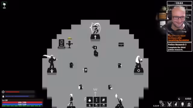 05:07:16Der Streamer startet in Dark Hunting Ground und navigiert durch die Menüs. Er wählt die Klasse des Bogenschützen und interagiert mit Statuen, um erste Fähigkeiten wie einen Pfeilschuss freizuschalten. Das Tutorial führt ihn durch die grundlegende Steuerung: Skills werden der linken Maustaste, der rechten Maustaste und der Leertaste zugewiesen. Die erste Quest besteht darin, einen Piranha-ähnlichen Gegner zu töten, um den Rang zum Lehrlingsjäger zu erreichen.