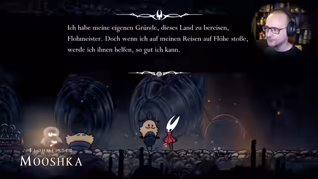 02:33:17Die Erkundung der Spielwelt von Silksong offenbart detaillierte Umgebungen und interessante Charaktere. Es wird über die Bedeutung von Landmarken und Gebietsbezeichnungen wie die Uckermark diskutiert, wobei der Fokus auf der Interpretation der Welt und ihrer Geschichte liegt. Im weiteren Verlauf trifft der Charakter auf Flohmeister Muschka, den Anführer einer Karawane, und verspricht, verirrte Flöhe zu finden und zur Karawane zu bringen. Diese Begegnung führt zu weiteren Interaktionen mit Charakteren wie Grischkin und Deschner, die unterschiedliche Perspektiven und Sorgen teilen. Die Reise führt durch gefährliche Gebiete, in denen Respekt vor den Bestien überlebenswichtig ist. Durch das Lösen von Rätseln und das Öffnen von Türen werden neue Gebiete zugänglich, wobei der Charakter Splitteranhänger findet, die ihm helfen, mehr Schalensplitter von besiegten Lebewesen zu erhalten. Es wird auch überlegt, wie man die VODs am besten auf Twitter und YouTube teilen kann, wobei der Fokus auf der Musik und den Bewegungen im Spiel liegt. Der Charakter interagiert auch mit Poshanka, einem Navigator, der Karten und Vorräte tauscht, und erhält den Auftrag, fünf Flöhe zu finden und zur Flohkarawane zu bringen. Chakra, eine Ringträgerin, bietet Karten zum Tausch an und gibt Einblicke in die Welt von Pharlom. Der Charakter erwirbt einen Federkiel, um die Karten zu ergänzen, und einen Kompass, um die Position zu bestimmen, wobei die Interaktionen und Dialoge die Tiefe und den Humor der Spielwelt hervorheben. Es wird auch über die Pilger gesprochen, die scheinbar den Verstand verloren haben.