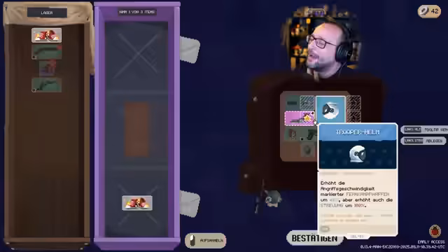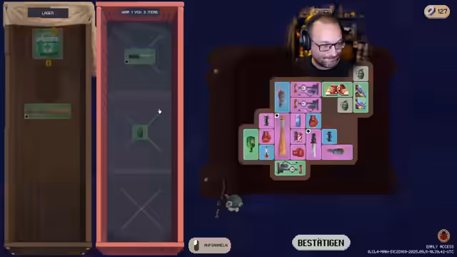 08:17:02Der Streamer konzentriert sich darauf, sein Inventar optimal zu organisieren und die besten Gegenstände auszuwählen. Er entscheidet sich für eine Kombination aus lila Messer und anderen Upgrades, um seinen Schaden zu maximieren. Dabei zeigt er sich unsicher über die endgültige Konfiguration, ist aber von der Optik der Ausrüstung beeindruckt. Er betont, dass er keine Ahnung von Builds hat, aber von den Ergebnissen begeistert ist.