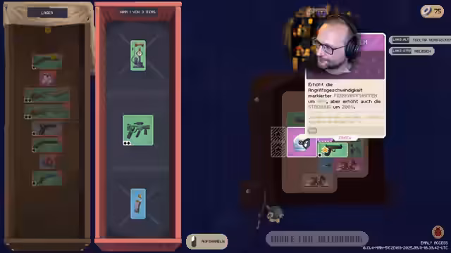 06:13:02Der Streamer taucht tiefer in das Inventarsystem von Deadly Days Roadtrip ein und entdeckt die Möglichkeit, Items zu kombinieren und Waffen zu verbessern. Er zeigt, wie er Items wie Fahrradpumpen und Waffen synergisiert, um seinen Charakter zu stärken. Er erwähnt auch das Leaderboard und vergleicht seine Fortschritte mit anderen Spielern. Der Streamer scheint das strategische Element des Spiels zu schätzen und experimentiert mit verschiedenen Kombinationen, um den maximalen Nutzen aus seinem Inventar zu ziehen.