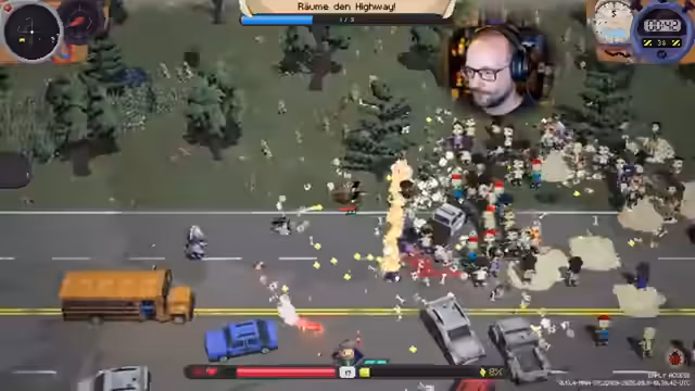 08:27:17Der Streamer fortschreitet durch die Spiellevel und trifft auf zunehmend stärkere Gegner. Er berichtet über steigende Schwierigkeiten, besonders mit geringer Heilung und begrenztem Benzin. Dabei zeigt er Improvisationstalent, indem er schnell auf sich ändernde Situationen reagiert und taktische Entscheidungen trifft, um den Fortschritt im Spiel sicherzustellen.