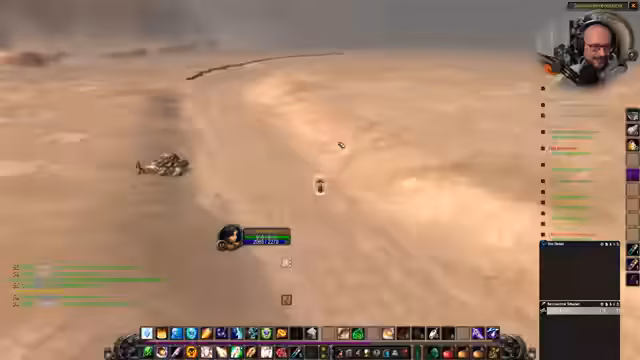 01:08:47Der Streamer sammelt Geierknochen für eine Quest, wobei er sich über den geringen Aufwand freut. Er befindet sich im Gebiet '1000 Nadeln', einem Horde-Gebiet, und kritisiert die soziale Abwesenheit anderer Spieler, die er als 'Singleplayer-MMO' bezeichnet. Während der Questaktivitäten diskutiert er auch die Nutzung von Addons wie 'Tiny Threats', um seinen Aggro-Zug zu managen, und denkt über Mana-Nutzung bei der Heilung nach.