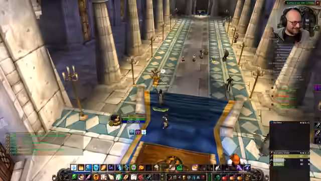 01:21:40Der Streamer und seine Gruppe erkunden eine gefährliche Zone im Spiel World of Warcraft. Die Strategie wird koordiniert, wobei der Fokus auf der Kontrolle von Gegnern (CC) und dem Management von Bosskämpfen liegt. Ein kritischer Moment tritt ein, als der Streamer aufgrund von Technischen Problemen wie Crowd Control (CC) für einen Moment aus dem Spiel genommen wird und keine Hilfe leisten kann. Dennoch verläuft der Kampf erfolgreich und die Gruppe zieht weiter.