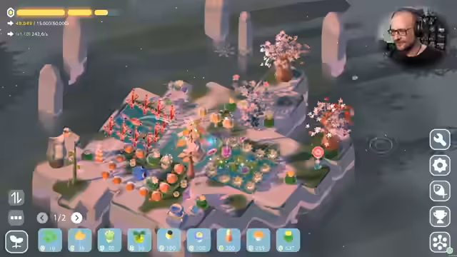 02:34:32Der Stream beginnt mit den ersten Schritten im Spiel MIO: Memories in Orbit. Es geht darum, Kristalle zu produzieren, indem Pflanzen und Gebäude gebaut werden. Ein zentrales Element ist das Anlegen von Wasserteichen, in denen Fische gefangen werden können. Der Spieler entdeckt verschiedene Fischarten, die durch Rechtsklick das Wetter wechseln oder andere besondere Effekte auslösen können. Das Ziel ist es, die Insel durch das Platzieren von Objekten zu erweitern und die Kristallproduktion zu steigern.