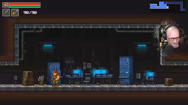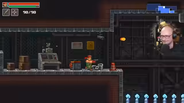 05:04:50Der Streamer erkundet das Spiel und stößt auf einen Wissenschaftler als Bossgegner. Im Kampf nutzt er zunächst Shuriken, die effektiv durch Schilde dringen, doch der Boss wechselt häufig seine Positionen und greift mit Kontaktschaden an. Mehrmals ist der Streamer knapp an der Niederlage, nutzt aber Heilgegenstände und die Speicherfunktion, um zu überleben. Nach mehreren Versuchen besiegt er den Boss und erhält als Belohnung einen neuen Schlüssel für den Fortschritt im Spiel.