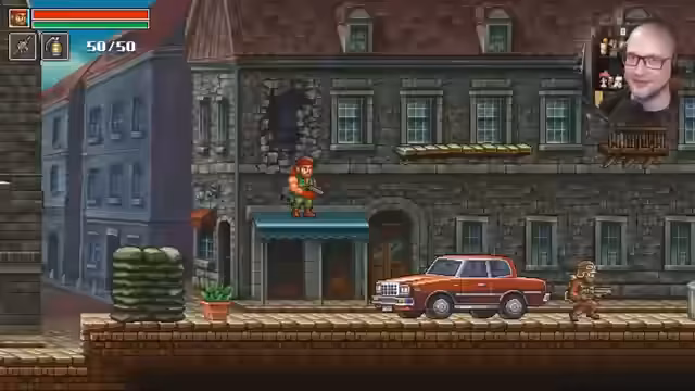 02:20:50Der Streamer beginnt mit dem Spielen von "Guns of Fury", einem Metroidvania im Stil von Metal Slug. Er zeigt sich begeistert von dem Spiel und lobt die Pixel-Art-Grafik. Die Story beginnt im Jahr 2042, in einer Welt, die von einer Energiekrise betroffen ist. Der Wissenschaftler Dr. Claus hat die Tetra-Zelle entdeckt, verschwindet aber kurz darauf. Der Spieler muss als Vincent van Knall Dr. Claus retten und die Pläne von A. Easton vereiteln. Der Streamer demonstriert das Gameplay, indem er Gegner abschießt und die Umgebung erkundet. Er vergleicht das Spielgefühl mit Arcade-Klassikern und freut sich über die vielen Details und Zerstörungsmöglichkeiten. Er entdeckt verschiedene Waffen und Fähigkeiten, darunter ein Messer und die Möglichkeit, Laternen zu zerstören.