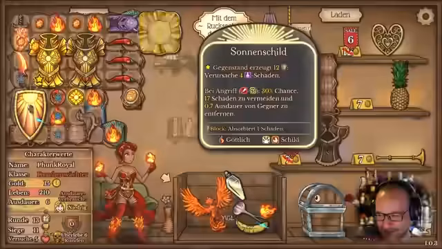 02:20:07Die Konzentration liegt auf der Maximierung des Schadens durch den Phönix-Gegenstand. Entscheidungen werden getroffen, um mehr Glück, Dornen und Mana zu erhalten, was hauptsächlich über die Wunderlampe realisiert wird. Die Überlegungen drehen sich um den Tausch von Gegenständen, um den optimalen Build für den Phönix zu schaffen, wobei die Lederstiefel aufgrund der hohen Rüstung als weniger wichtig eingestuft werden. Die Herausforderung besteht darin, den vollen Rucksack zu verwalten und nicht permanent den gesamten Inhalt umstellen zu müssen.