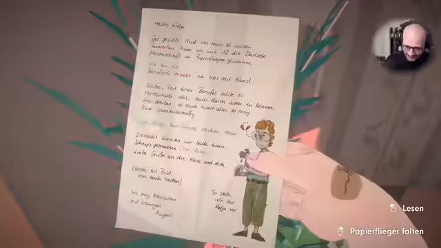 02:40:45Die Spielfigur des Kindes äußert Langeweile und Frustration über die Renovierungsarbeiten, was der Streamer nachvollziehen kann, da er selbst Umzüge als Kind gehasst hat. Die Entdeckung eines versteckten Briefes hinter der Tapete im Spiel weckt seine Neugier. Der Brief, adressiert an 'Hey du da' mit einer Berliner Vorwahl, ist eine Botschaft des Vorbesitzers, eines Botanikers namens Kolja. Die Geschichte springt ins Jahr 1989, kurz vor oder nach dem Mauerfall, und thematisiert einen geomagnetischen Sturm, der zu einem Stromausfall in der DDR führte. Diese historische Einbettung verleiht dem Spiel eine zusätzliche Ebene und ermöglicht dem Streamer, über die damalige Zeit und die gesellschaftlichen Umstände zu reflektieren, während er die Geschichte des Botanikers Kolja verfolgt.