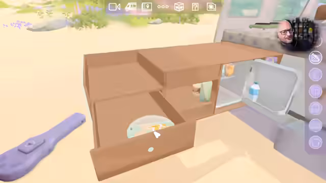 06:13:57Der Streamer beginnt mit dem Auspacken und Platzieren von Gegenständen im Campervan. Er startet mit Unterhaltungsmedien, wie einer Spielkonsole, auf der 'Animal Mobming' gespielt wird, und entdeckt Sammelobjekte wie Federn und Muscheln. Er nutzt den Kameramodus, um Bilder zu erstellen und die Tageszeit sowie Partikel einzustellen. Die Küchenzeile beeindruckt ihn mit ihrer platzsparenden Funktionalität, und er plant, Koch- und Essbereiche einzurichten. Er diskutiert mit den Zuschauern über die Herausforderungen des Camperlebens bei schlechtem Wetter und die Bedeutung von Feuchtigkeit. Anschließend widmet er sich der Platzierung von Hygieneartikeln wie Zahnpasta und Avocado-Creme, die er in einem Kosmetikfach verstaut. Er sortiert die Gegenstände nach Wichtigkeit und überlegt, wo Kleidung wie Bikinis, T-Shirts und Shorts am besten untergebracht werden können, wobei er humorvoll über die Identifizierung mancher Kleidungsstücke spekuliert. Die Interaktionsmöglichkeiten im Spiel erweitern sich mit den verschiedenen Stationen, was den Van und die Utensilien vielfältiger macht.