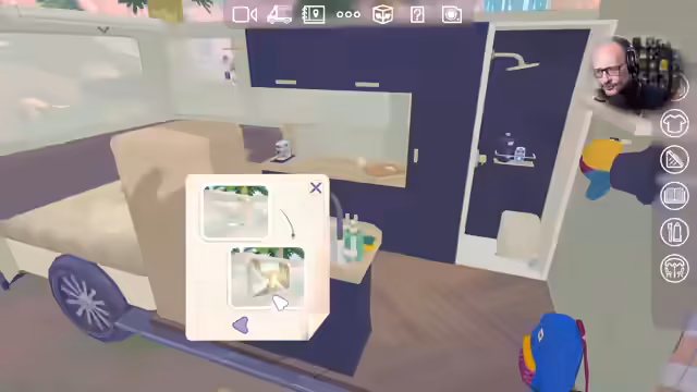 07:51:49Der zweite Camper Van, ein deutliches Upgrade zum ersten, bietet eine Fülle neuer Gestaltungsmöglichkeiten. Der Streamer wählt einen Frosch als Maskottchen und entscheidet sich für ein dunkleres, gebeiztes Holzfurnier für den Boden und passende Wände. Ein Bettsofa mit viel Stauraum, eine gut organisierte Küchenzeile mit einem richtigen Kühlschrank und sogar eine Duschkabine mit chemischer Toilette werden ausgewählt. Die Auswahl der Inneneinrichtung lässt auf einen durchdachten und komfortableren Lebensstil schließen. Es werden auch erste Gegenstände wie ein Projektor mit Erinnerungsbildern, Musikgeräte und Schlüssel platziert. Die Beobachtung, dass einige Kleidungsstücke und Accessoires eher männlich wirken, führt zu Spekulationen im Chat, ob es sich um eine andere Person handelt oder ob die Protagonistin eine männliche Begleitung hat, was die narrative Tiefe des Spiels erweitert.