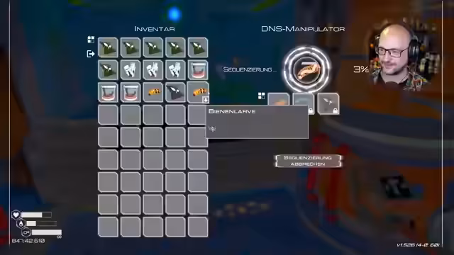 03:38:31The stream begins with in-game actions where the player sets up various systems, including creating crunchy corn treats and building a fish vitrine to display fish. They express enjoyment of the game's unique blend of calm and chaos, noting the satisfaction derived from small achievements. This includes establishing a butterfly habitat by placing butterfly larvae, organizing bees larvae and Biokunststoffklumpen, and constructing an aquarium while planning for fish eggs. The gameplay revolves around steady progression and the engaging, rewarding cycle of terraforming and resource management in Planet Crafter.