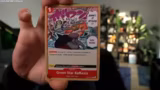 02:31:38Der Stream beginnt mit der enthusiastischen Eröffnung eines One Piece OP-01 Displays. Der Kommentator präsentiert das Produkt und erwähnt dabei die Digimon Illustrated Competition, die ihn ebenfalls sehr gespannt macht. Nach dem Öffnen der Verpackung werden verschiedene Karten ausgestellt, wobei insbesondere Charaktere wie Marco der Phönix und Killer positiv hervorgehoben werden. Die Begeisterung für klassische Charaktere wie Korbi und die ausdrucksstarken Artworks steht im Vordergrund.