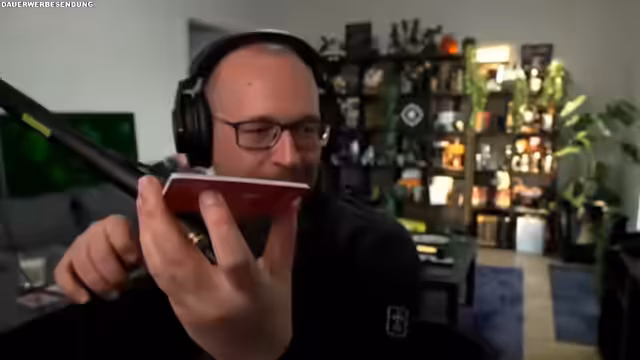 01:55:35Nach einer kurzen Pause, in der der Streamer Wäsche aufhängt, kehrt er mit einem aufgeräumteren Hintergrund zurück. Das Thema der anfänglich im Stream präsenten Pfanne wird humorvoll aufgegriffen und endet schließlich damit, dass sie verschwindet. Gleichzeitig wird die Ankunft des Moderators Derpovic erwartet, der eine wichtige Rolle spielt, da er dem Streamer vor vier Jahren ein One Piece OP-01 Display aus seinem Kartenladen besorgt hat. Das Aufmachen dieses Displays als nächster fester Programmpunkt angekündigt.