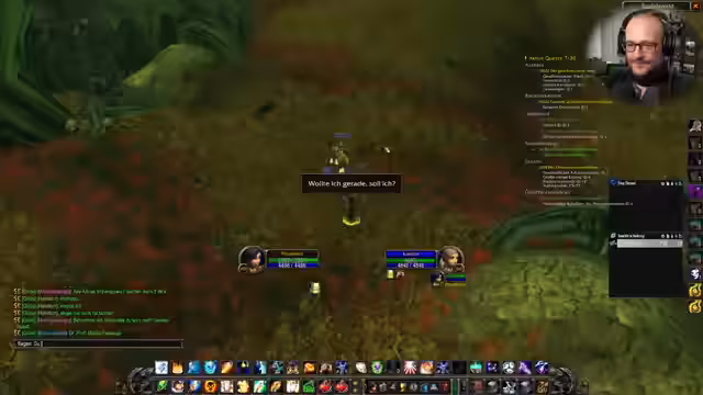 07:10:26Die Unterhaltung konzentriert sich auf World of Warcraft. Der Streamer diskutiert über die Erstellung von Elementarfeuer für den bevorstehenden Raid, eine wichtige Aufgabe für seine Gilde. Dabei berichtet er von einem unglücklichen Vorfall, bei dem sein Charakter kurz vor dem Raid stirbt. Er betrachtet dies humorvoll und vergleicht es mit dem Ende einer tollen Serie, auch wenn es traurig ist. Er stellt auch fest, dass man in der aktuellen Spielversion Warlocks seltener sieht und ihre Pets oft nicht überleben.