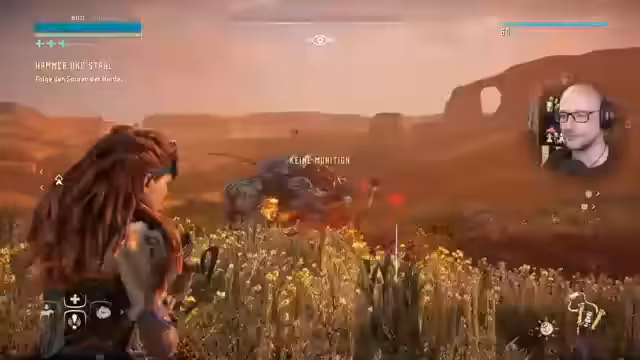00:13:51Im weiteren Verlauf wird die Hauptquest wieder aufgenommen. Der Streamer sucht nach Kabeln für die Kanonen, indem er eine Herde von Behemoths jagt. Er findet eine Händlerin namens Petra, mit der er interagiert und die ihm Informationen gibt. Nachdem er die Herde gefunden hat, kämpft er erfolgreich gegen die Maschinen, um die benötigten Teile zu erhalten und seine Verbündeten zu unterstützen.