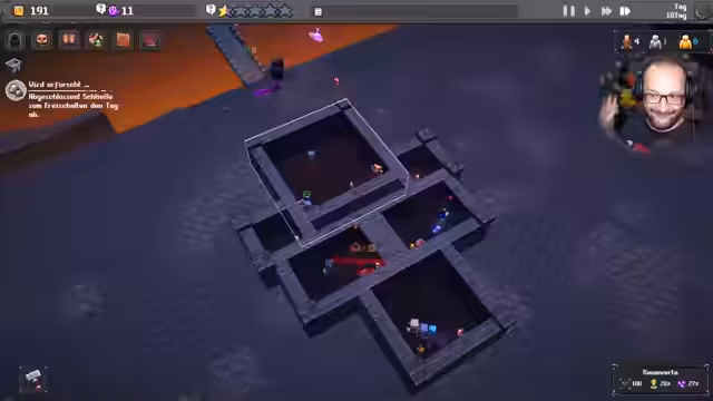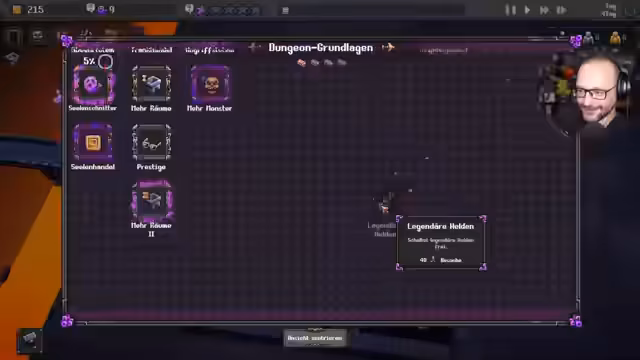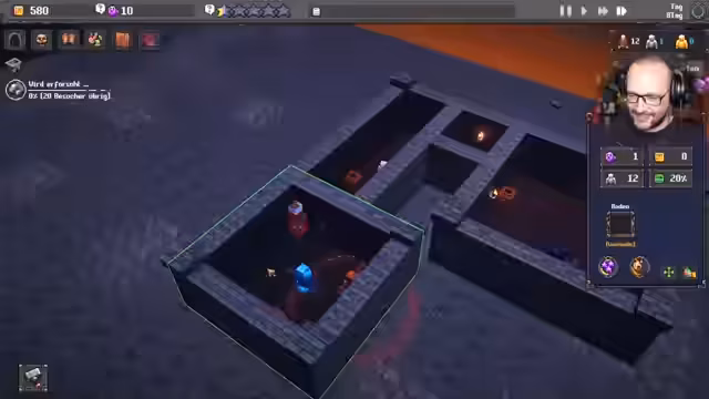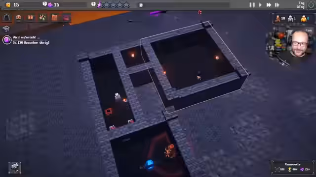 06:07:20Der Stream startet in Dungeon Tycoon, einem Spiel, in dem man eigene Dungeons baut und verwaltet. Nachdem ein Dungeon namens 'Mops-Grotte' erstellt wurde, beginnt die Gestaltung des ersten Raumes. Es werden grundlegende Elemente wie Holztruhen zur Beuteaufbewahrung und Monster-Spawner für einen 'Kleinen Kriecher' platziert. Der Fokus liegt auf dem Verständnis des grundlegenden Gameplay: Wie baut man einen Raum, wie werden Monster und Dekoration platziert und wie interagiert man mit der Benutzeroberfläche?