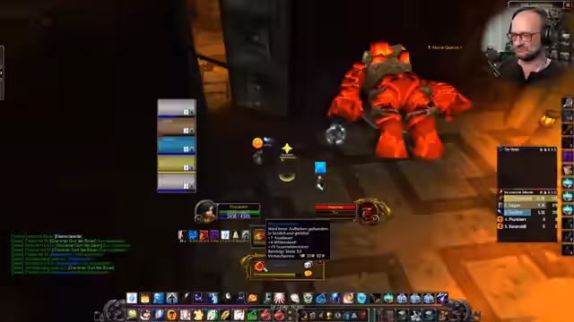 00:29:00Während des Runs im Dungeon werden taktische Feinheiten besprochen. So wird ein Reset-Spot gezeigt und die Strategie für die Bosse durchdacht. Besonders bei den Feuerelementaren im hinteren Bereich wird die Koordination zwischen Heilern und Tank thematisiert, um kritische Situationen zu vermeiden. Auch der Loot, wie ein neuer Zauberstab, sorgt für Begeisterung und wird bewundert.