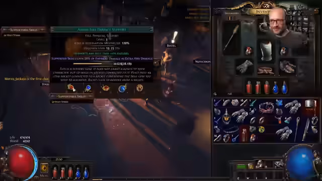 09:42:41Da der Streamer feststellt, dass sein Build gegen kleine Gegner effektiver ist, ersetzt er den "Multi-Strike"-Support durch "Melee Physical Damage Support" für mehr Schaden. Parallel dazu wird die hohe Verfügbarkeit von "Chaos Orbs" und der sinkende Wert von "Divine Orbs" im Start der neuen Liga diskutiert. Die Währung wird strategisch eingesetzt: Stattdessen den gefundenen "Reliquary Key" sofort zu öffnen, behält der Streamer ihn, um ihn später zu einem höheren Preis zu verkaufen und vermeidet so einen voreiligen und wertverlustreichen Verzehr.