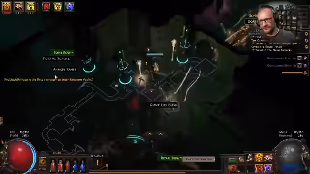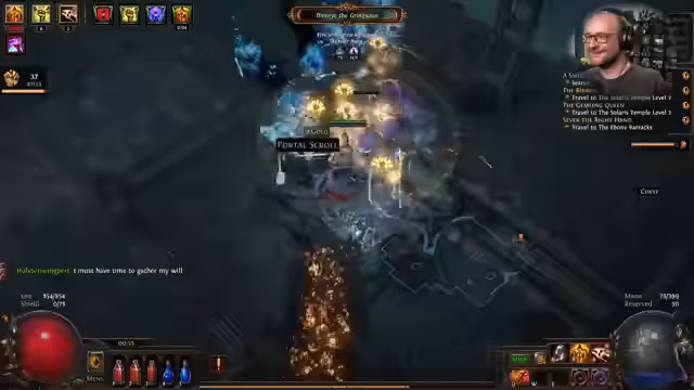 08:01:26Nach dem Erreichen der Ascendancy fliegt der Streamer durch die Akte, erntet Items und wird stärker, was ihn unaufmerklich und törichtes Spielen verursacht. Er nutzt Gold für Gambeln, um Items zu erhalten, und fühlt sich wie ein Oberpriester. Als Hintergrundmusik läuft die Terraria Calamity Playlist, deren Musikstücke er sehr schätzt und die den Stream untermalt.