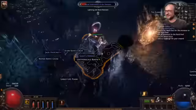 03:34:59Der Streamer übergeht den Knochenhöhle-Quest-Punkt bei den Mudflats, da dieser keinen Skill-Punkt bringt, sondern nur einen Respect-Punkt. Das Inventar wird schnell voll, was zur Praxis führt, unnötige Items wie niedrigstufige Edelsteine zu entfernen. Die Erkundung konzentriert sich auf Rogue Exiles und Loot-Phänomene, wobei der Streamer die positiven Geräusche des Item-Filters als Belohnung für Drops erwähnt, unabhängig vom tatsächlichen Wert. Diese Abschnitte zeigen eine bewusste Entscheidung für Effizienz und das Fokussieren auf unterhaltsame Spielmechaniken.