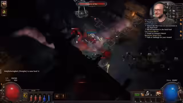 01:29:10Der Stream beginnt mit einer humorvollen Parodie des Vaterunsers, die sich auf den Zufall (RNG) im Spiel konzentriert und um reiche Beute (Loot) und einen mühelosen Start bittet. Nach dem Amen wird der Start der neuen Path of Exile-Liga gefeiert. Der Streamer hat sich für den Holy Strike Guardian als Build entschieden, eine Kombination aus Nahkampf und Dienern (Minions), die ihm neu ist. Der Fokus liegt auf einem entspannten Start in die Liga, bei dem erst einmal die Grundlagen gelegt und kosmetische Gegenstände wie ein Schrittzählerring und ein Pilferring angelegt werden, um das Looting zu dokumentieren.