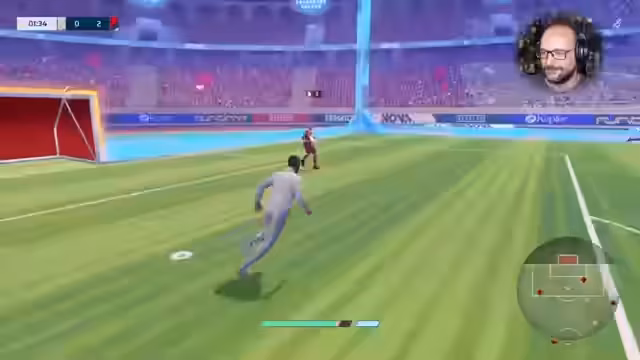 02:40:00Nachdem die Technik anfangs ungewohnt war, beginnt das erste offizielle Match im 3-gegen-3-Modus. Der Streamer hat enorme Schwierigkeiten mit der Ballkontrolle und dem Passen mit der Maus, was zu Missverständnissen im Team führt. Trotzdem wird ihm das Spielprinzip schnell sympathisch, ähnlich wie in Rocket League, aber mit einer direkteren Ballkontrolle. Er arbeitet an Zielen und Passen, erkennt aber auch, dass er viel Übung benötigt.