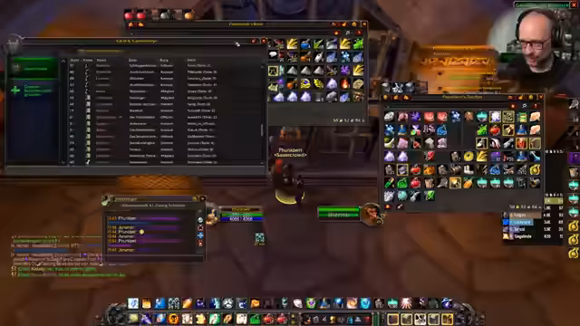 02:58:57Nach dem Erreichen des Maximallevels widmet sich der Streamer der Organisation seines Inventars und seiner Bank. Es wird eine große Menge an gesammelten Gegenständen aufgeräumt und bewertet. Es werden Pläne für zukünftige Aktivitäten geschmiedet, darunter das Weiterfarmen von Ruf für die Thorium-Bruderschaft, das Sammeln von Feuerwasser der Winterfälle und das gemeinsame Beenden von Quests. Die Richtung ist nun weniger auf Leveln, sondern auf endgame-Aktivitäten ausgerichtet.