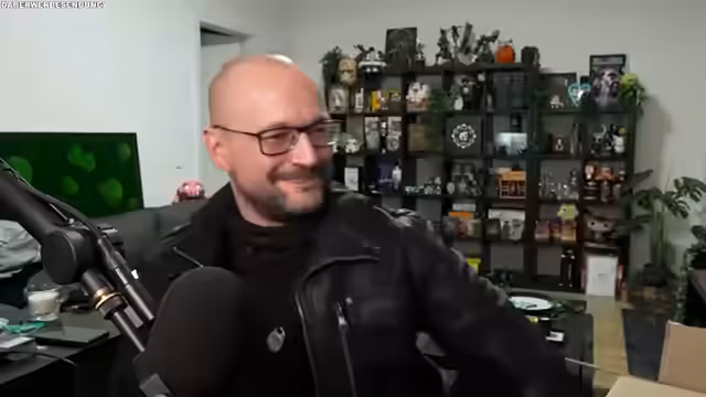 05:45:28Der Streamer diskutiert die Größenunterschiede seiner beiden Gürtel und zeigt, wie er den kleineren Gürtel trägt, der viel Spielraum lässt. Er präsentiert stolz sein neues Paket von EMP, das eine Lederjacke, einen Schlauch (Schal), ein Schlafshirt und einen Bademantel enthält. Er erwähnt, dass er monatlich einmal bei EMP einkaufen darf, was als viel zu viel empfunden wird. Der Zustand seiner Mooswand wird thematisiert, die zwar noch nicht final platziert, aber im Besitz ist und noch einige Arbeit erfordert.