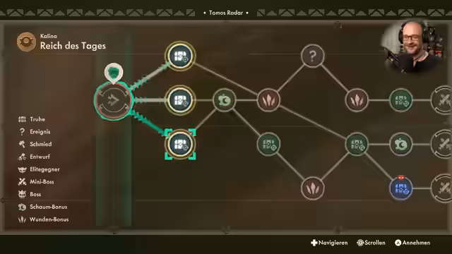 06:15:52Ein Fragezeichen auf der Karte führt zu einem Ereignis, bei dem der Händler auf zwei Talik-Krieger trifft. Diese fordern den Händler zu einer Herausforderung auf. Es stehen drei Optionen zur Auswahl: 'Unantastbar' (keinen Schaden in zwei Begegnungen für 20% kritische Trefferschance), 'Besonderer Schmerz' (10 Schaden pro Spezialangriff in drei Räumen für 20% mehr Spezialangriffsschaden) oder 'Schießdisziplin' (keine Schusswaffe in drei Begegnungen für 50% mehr Waffenschaden). Die 'Schießdisziplin' wird gewählt, was zu einer erhöhten Schwierigkeit führt, da keine Schusswaffe verwendet werden darf. Es kommt zu Problemen mit der visuellen Wahrnehmung von Treffern, was zu Frustration führt, da unklar ist, ob ein Treffer kassiert wurde oder nicht. Ein 'Flummelflotz' erscheint, ein süßes Wesen, das gestreichelt werden kann und in Zukunft Belohnungen verspricht. Die Verkaufsstrategien werden weiterhin angepasst, um optimale Preise zu erzielen, wobei die Qualität und Seltenheit der Gegenstände berücksichtigt werden.