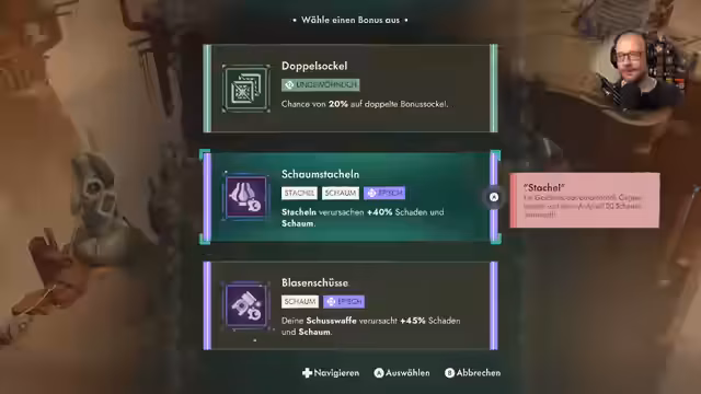 04:29:25Der Streamer betritt einen Dungeon, der sich als Roguelite-ähnliches Bereich mit zufälligen Elementen herausstellt. Es gibt verschiedene Wege mit unterschiedlichen Boni wie Schaum, Wunden und Elite-Gegnern. Die Mechaniken des Kampfes werden getestet; Gegner können nicht unterbrochen werden, was das Gameplay anspruchsvoller gestaltet. Es werden neue Gegenstände wie Schleimessenz und Glassteine gefunden, die sowohl combat- als auch handelsrelevante Funktionen haben. Der Streamer muss seine Taktik an die ungewohnten Kämpfe anpassen.