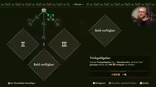 04:44:01Der Spieler äußert sich positiv über das Spiel, betont jedoch die Schwierigkeit, sich an die fehlende Stagger-Mechanik bei Gegnern zu gewöhnen, was eine grundlegende Umstellung seiner bisherigen Spielerfahrung erfordert. Die Einführung von Metaprogression durch Entwürfe aus Dungeons und Dimensionen wird begeistert aufgenommen, da diese zur Herstellung von Waffen und Tränken dienen. Ein neuer Charakter, André, bietet die Möglichkeit, Rüstungen herzustellen und Materialien aus der Wüste für weitere Kreationen zu nutzen, darunter die legendäre 'Ewige Wut'-Klinge. Zur Herstellung von Waffen werden Gold und unbekannte Gegenstände benötigt, was die Notwendigkeit des Geldverdienens unterstreicht. Ein weiterer wichtiger Neuzugang ist der Helfer H311-E-L-F-E3, ein Ladenassistent, der alte Relikte bereithält, falls der Spieler keine eigenen hat, und die Möglichkeit bietet, den Laden zu verbessern und Aufwertungen freizuschalten, um mehr Gold zu verdienen. Der Helfer ermöglicht auch die Neuorganisation und Dekoration des Ladens. Die Prestige-Vitrine, die Relikte für 20% mehr Gold verkauft, wird als wertvolle Ergänzung erkannt, die für die wertvollsten Gegenstände reserviert werden sollte. Der Spieler entdeckt weitere Ladenboni und die Möglichkeit, Trinkgeldgeber freizuschalten, die den Wert von Trinkgeldern erhöhen. Die Füllrate für Boni kann ebenfalls reduziert werden, um schneller Boni zu erhalten.
