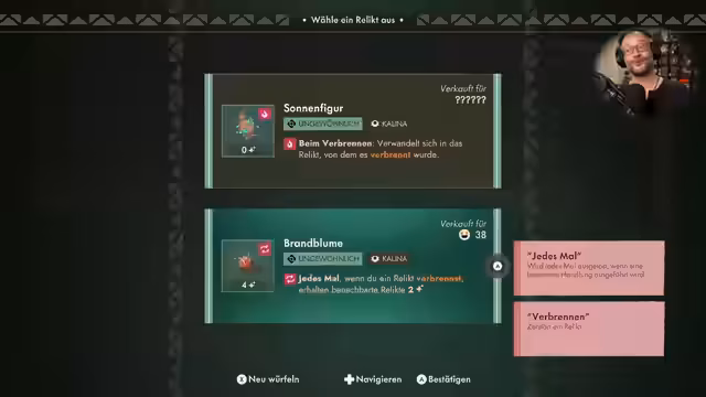 06:05:24Das Spiel wird mit Hades verglichen, jedoch mit stärkerem Fokus auf Looten und Verkaufen. Neue Relikte wie ein Gegner, der Rüstung verleiht und sich beim Verbrennen in das verbrannte Relikt verwandelt, sowie ein Relikt, das beim Verbrennen benachbarte Relikte in der gleichen Spalte mit 6 Rüstung versorgt, werden entdeckt. Die strategische Platzierung von Relikten, um maximale Boni zu erzielen, wird diskutiert, insbesondere die Frage, ob die Qualität des verbrannten Gegenstandes übernommen wird. Es wird entschieden, die Rüstung einem Gegenstand zu geben, der nicht verbrannt werden soll. Die Möglichkeit, Relikte doppelt zu verbrennen, wird als vielversprechend angesehen. Das Spiel 'Indica' wird als weiteres interessantes Spiel erwähnt. Die Effektivität des Spezialangriffs des Schwertes wird weiterhin getestet. Die strategische Nutzung von Relikten, die in Pfeilrichtung verbrennen oder Flüche reaktivieren, eröffnet neue taktische Möglichkeiten. Die Komplexität und die vielfältigen Interaktionen der Gegenstände werden als 'richtig sexy' und 'geil' empfunden.