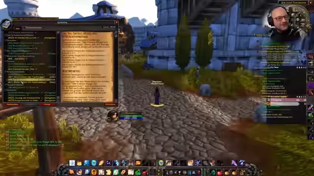 04:14:56Die Gruppe nutzt die Wege zwischen den Dungeons, um zusätzliche Quests zu erledigen. Es wird eine komplexe Quest um den Ring von Nancy und Worrel Sengguts aus dem Schärlachroten Kloster erklärt, die eine interessante Lore verfolgt. Anschließend inszeniert die Gruppe eine Gilden-Razzia in einem Ort namens Arathi Highlands, wobei sie sich als 'freie Volkspolizei der Vereinten Allianzvölker' ausgibt und ein verhextes Pergament sucht, um den nächstgelegnen Boss zu finden.