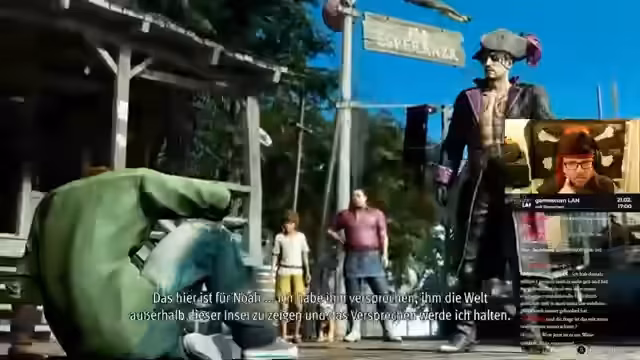 09:03:05Der Streamer startet direkt in das neue Spiel Like a Dragon Pirate Yakuza. Er beginnt mit den grafischen Einstellungen und stellt die Auflösung sowie die Bildwiederholrate auf 120 Hertz ein. Das Spiel beginnt mit einem Tutorial, das die Grundlagen des Kampfsystems erklärt, das sich von den Vorgängern durch actionreichere, buttonsmashing-basierte Kämpfe unterscheidet. Der Protagonist strandet auf einer Pirateninsel.